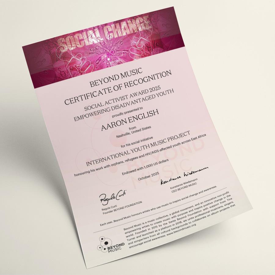 To honor this spirit, Beyond Music and the Beyond Foundation have introduced the Beyond Music Social Activist Award. Each year, five members are celebrated for their outstanding social engagement. This award shines a light on individual initiatives that represent the collective passion and commitment of our entire community. Each award is endowed with 1,000 USD to further support their initiatives.
